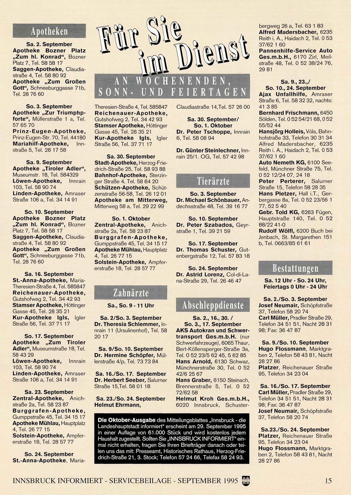 INNSBRUCK INFORMIERT - SERVICEBEILAGE - SEPTEMBER 1995