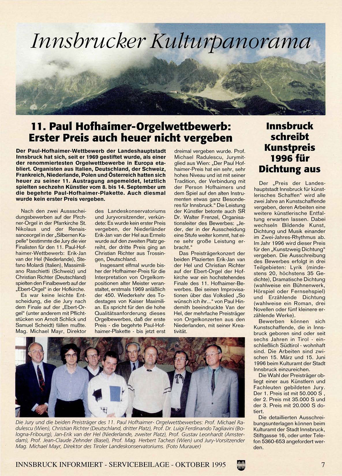 Die detaillierten AusschreiDie Jury und die beiden Preisträger des 11. Paul Hofhaimer- Orgelwettbewerbes: Prof. Michael Ra-bungsunterlagen können beim