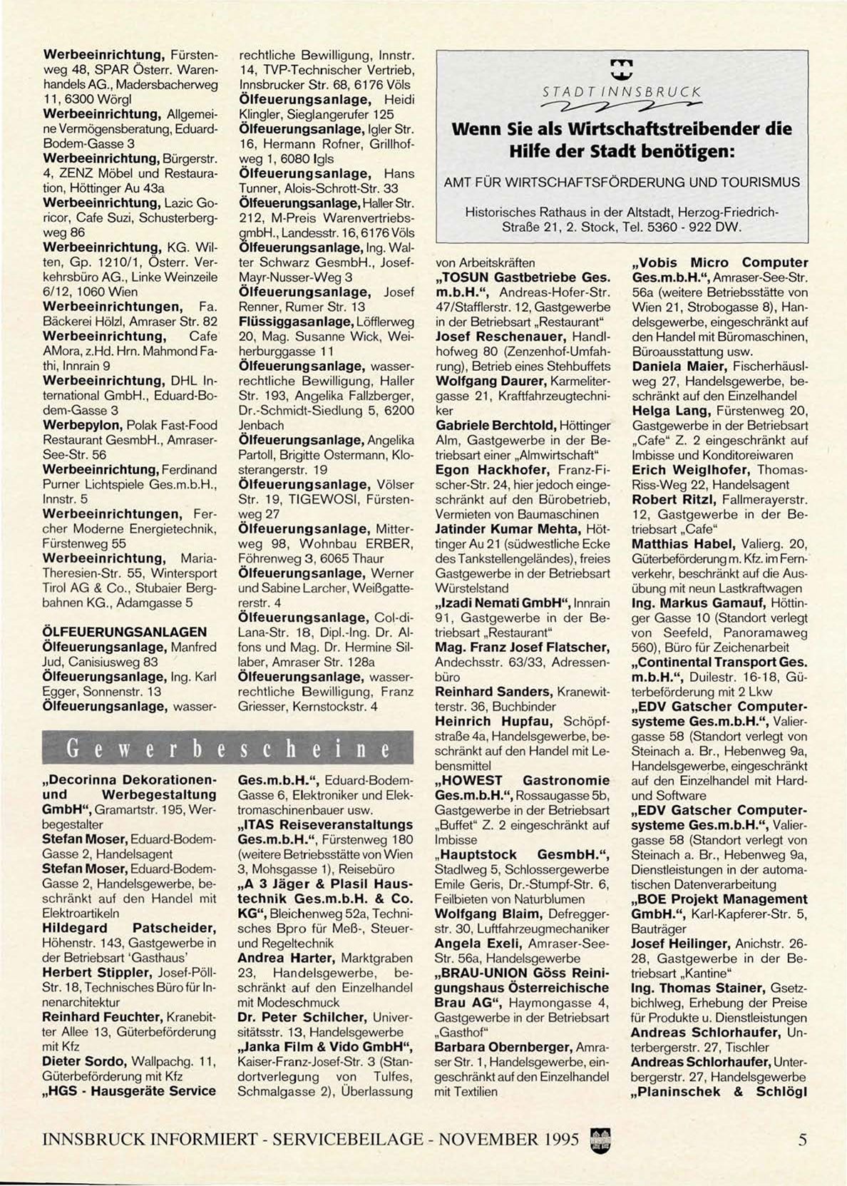 INNSBRUCK INFORMIERT - SERVICEBEILAGE - NOVEMBER 1995