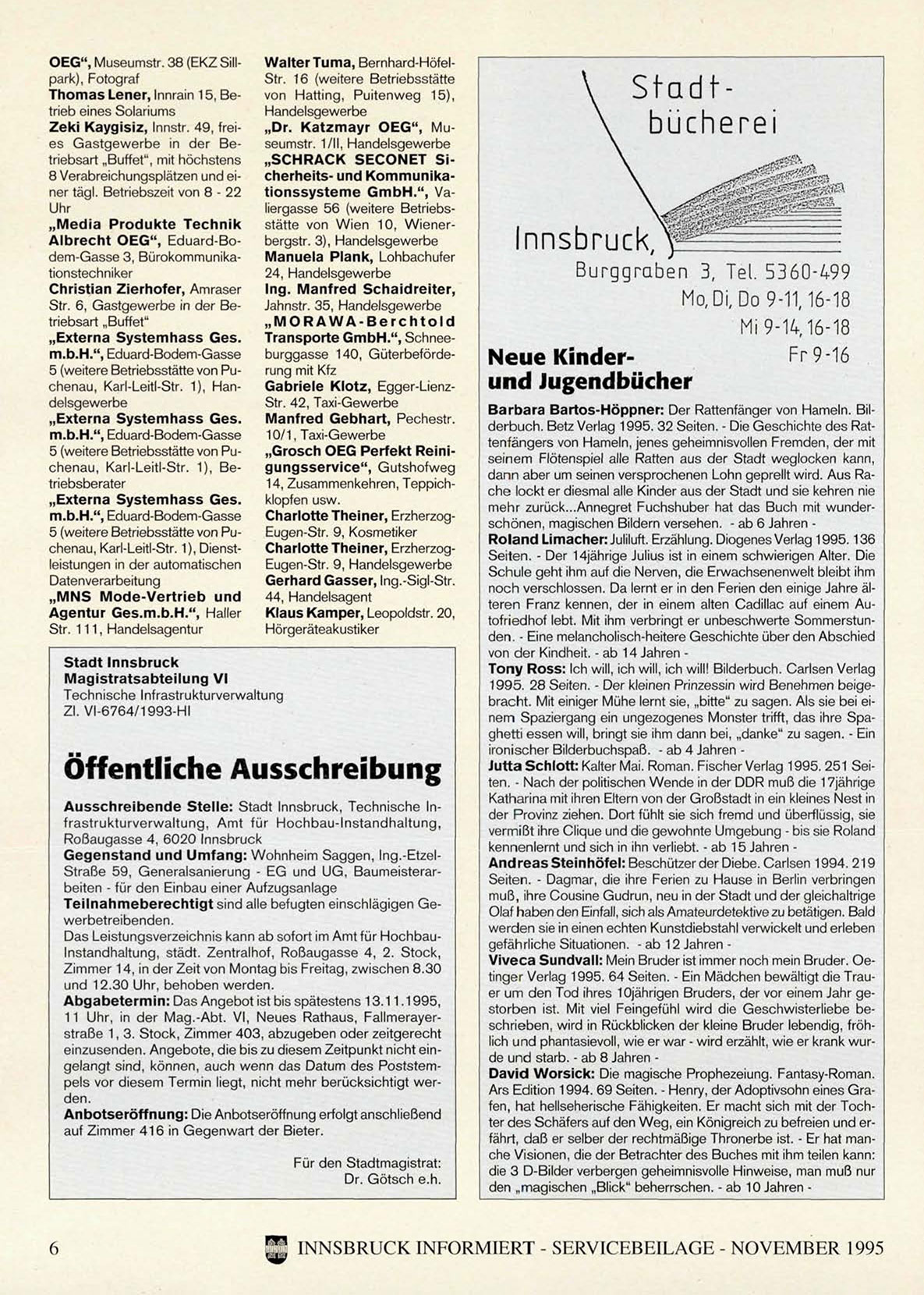INNSBRUCK INFORMIERT - SERVICEBEILAGE - NOVEMBER 1995