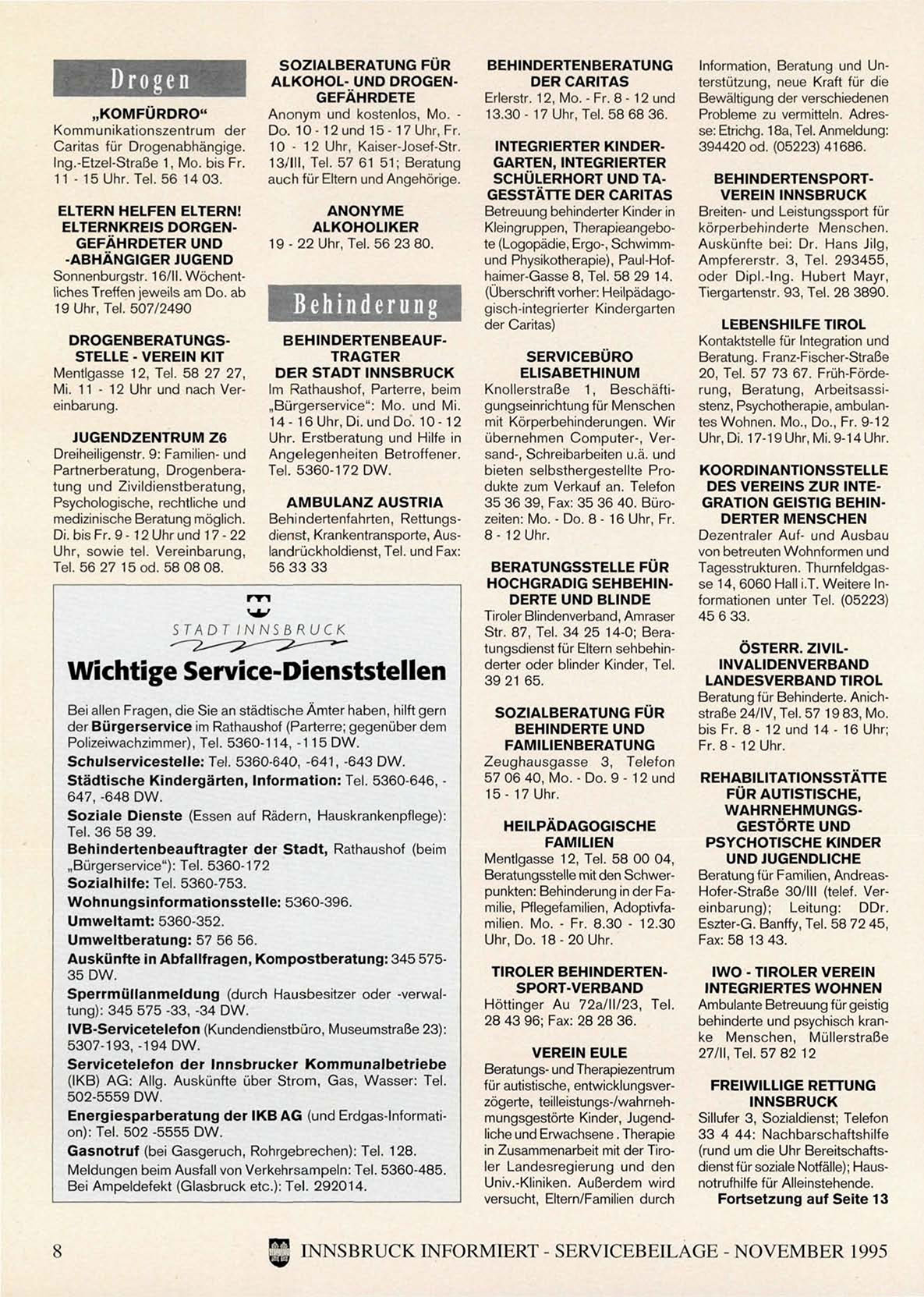 INNSBRUCK INFORMIERT - SERVICEBEILAGE - NOVEMBER 1995
