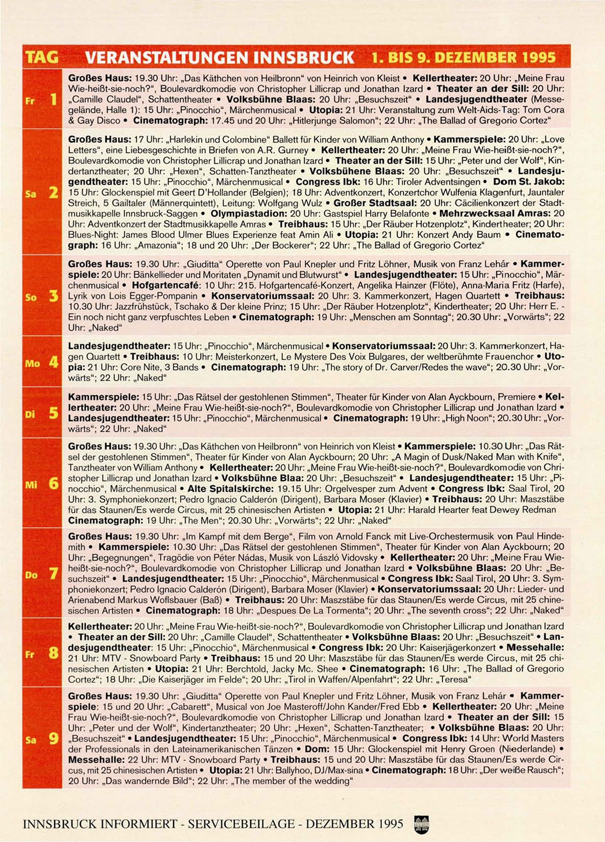INNSBRUCK INFORMIERT - SERVICEBEILAGE - DEZEMBER 1995