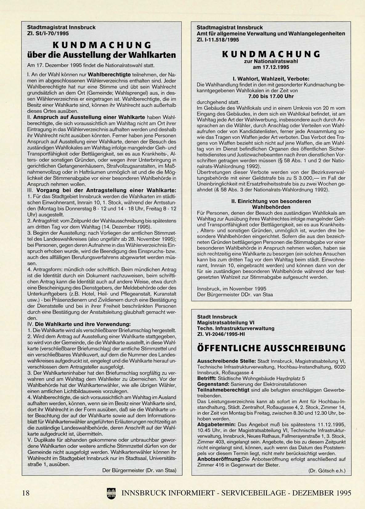 INNSBRUCK INFORMIERT - SERVICEBEILAGE - DEZEMBER 1995