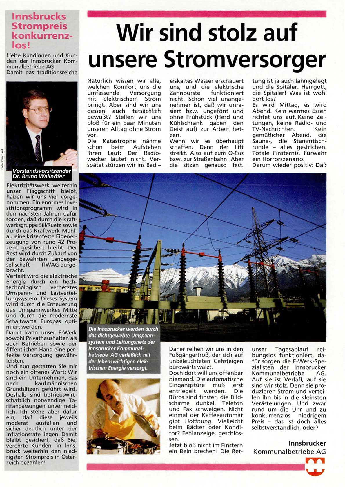 verehrte Kunden, in Innsbruck weiterhin den niedrigsten Strompreis in Österreich bezahlen!