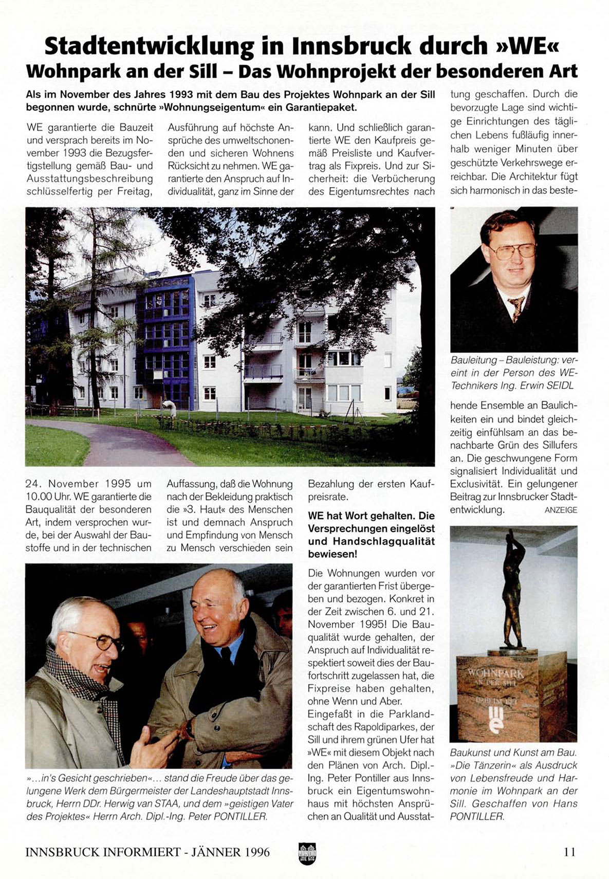Als im November des Jahres 1993 mit dem Bau des Projektes Wohnpark an der Sill